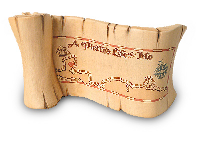 Registered convention guests received a "Pirate's Life for Me!" Opening Title Scroll (pictured above) as a gift upon registration for the 2000 Celebration of Walt Disney Art Classics (March 23-25, 2000). The Pirate's Scroll measures 3" tall and was sculpted by Bruce Lau. Each sculpture has the Convention logo backstamp on the back with Walt Disney World logo and March 2000 underneath Convention logo.