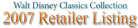 Below please find a listing of all Retailers currently authorized to sell the Walt Disney Classics Collection and to service the Walt Disney Collectors Society (in those countries where the Walt Disney Collectors Society is available). Retailers who are currently part of the Walt Disney Classic Collection's Gold Circle program are indicated with an *. Although Enesco, Group, Inc. has attempted to present an accurate listing, Enesco is not responsible for inadvertent errors that may have occurred in compiling this listing. The list is subject to change without notice. If any questions regarding the status of a particular retailer, please call: