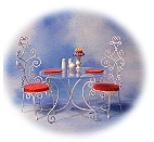 The Table & Chairs accessory item was retired with the Jolly Holidays Scene at the Disneyana Convention held at Walt Disney World in August, 2002. SRP of $85.00US. |