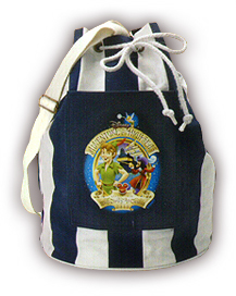 Event Logo Tote Bag Navy and white stripes provide the background for this event's whimsical logo featuring Peter Pan, Captain Hook and Tinker Bell. $ 29.00 US Each |