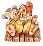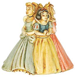 Inside: Snow White's apple and Cinderella's slipper on a pillow |