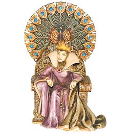 Peacock Throne is trimmed in turquoise rhinestones. |