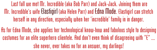 Elastigirl joins husband Mr. Incredible and baby son, Jack Jack (pictured at left).