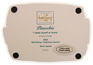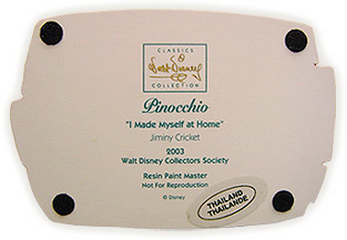 WDCC logo, Pinocchio, "I Made Myself at Home", Jiminy Cricket, 2003, Walt Disney Collectors Society, Resin Paint Master, Not For Reproduction, (c) Disney