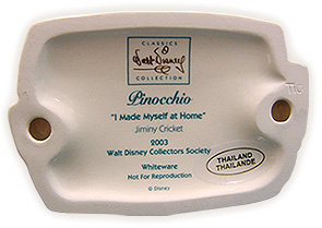 WDCC logo, Pinocchio, "I Made Myself at Home", Jiminy Cricket, 2003, Walt Disney Collectors Society, Whiteware, Not For Reproduction, (c) Disney