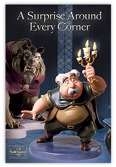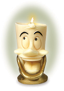 Lumiere Candle Promotional item created for the release of Maurice and upcoming 'Beauty and the Beast' sculptures and/or 'Beauty and the Beast' themed events throughout the coming year. The Lumiere Candle is an actual candle. The wick of the candle is the type that will burn down the core, without melting the outside (Lumiere's face) of the candle. Special Note: This image of the candle is an unretouched, early prototype. |