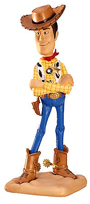 Bases for each "Toy Story" sculpture are fashioned like Andy's bed quilt.