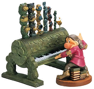 Organ Stool: Grumpy is seated on the bellows for the pipe organ.